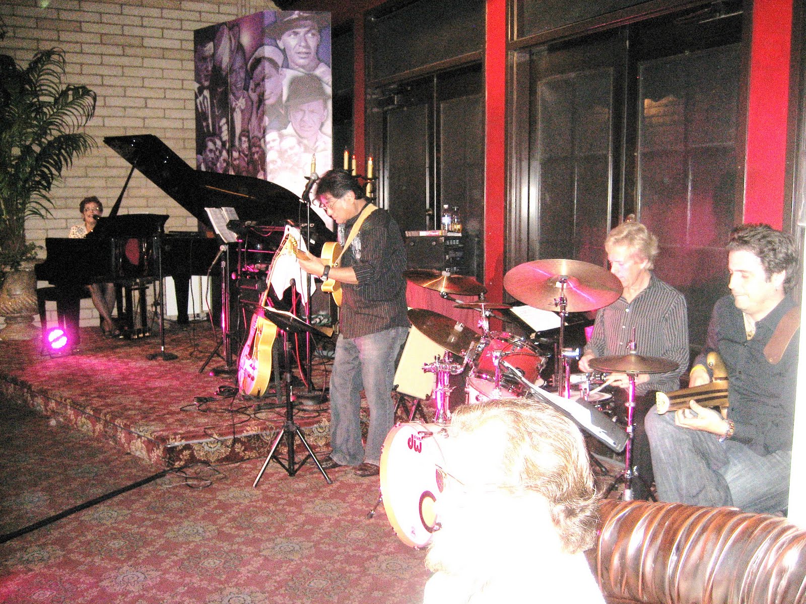 Adding to the evening of outstanding entertainment was the next act, Jazz Utopia. This was the quartet’s first appearance at Kelly’s Cabaret and they did a fabulous performance of "I Love Being Here With You" followed by the popular Jazz standard "On Green Dolphin Street." The Jazz Utopia quartet features Marlene Coker on vocals and piano, Henry Uechi on guitar, John Plows on drums and Enrico Santarelli on bass.